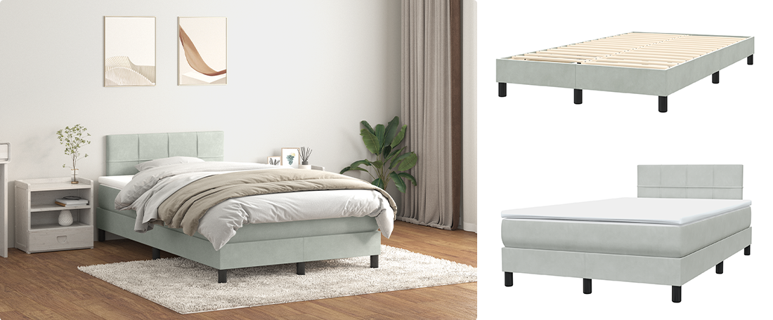 Αυτό το σετ κρεβατιού περιλαμβάνει σκελετό κρεβατιού, στρώμα με ανεξάρτητα ελατήρια και μαλακό ανώστρωμα για απόλυτη άνεση. Το βελούδινο πλαίσιο προσθέτει μια ζεστή πινελιά, ενώ τα ανεξάρτητα ελατήρια παρέχουν εξατομικευμένη υποστήριξη και μειώνουν τη μεταφορά κίνησης. Το τελάρο προσφέρει επιπλέον διαπνοή, διατηρώντας το στρώμα σας φρέσκο. Είναι το ιδανικό ολοκληρωμένο σετ για έναν ξεκούραστο βραδινό ύπνο.
