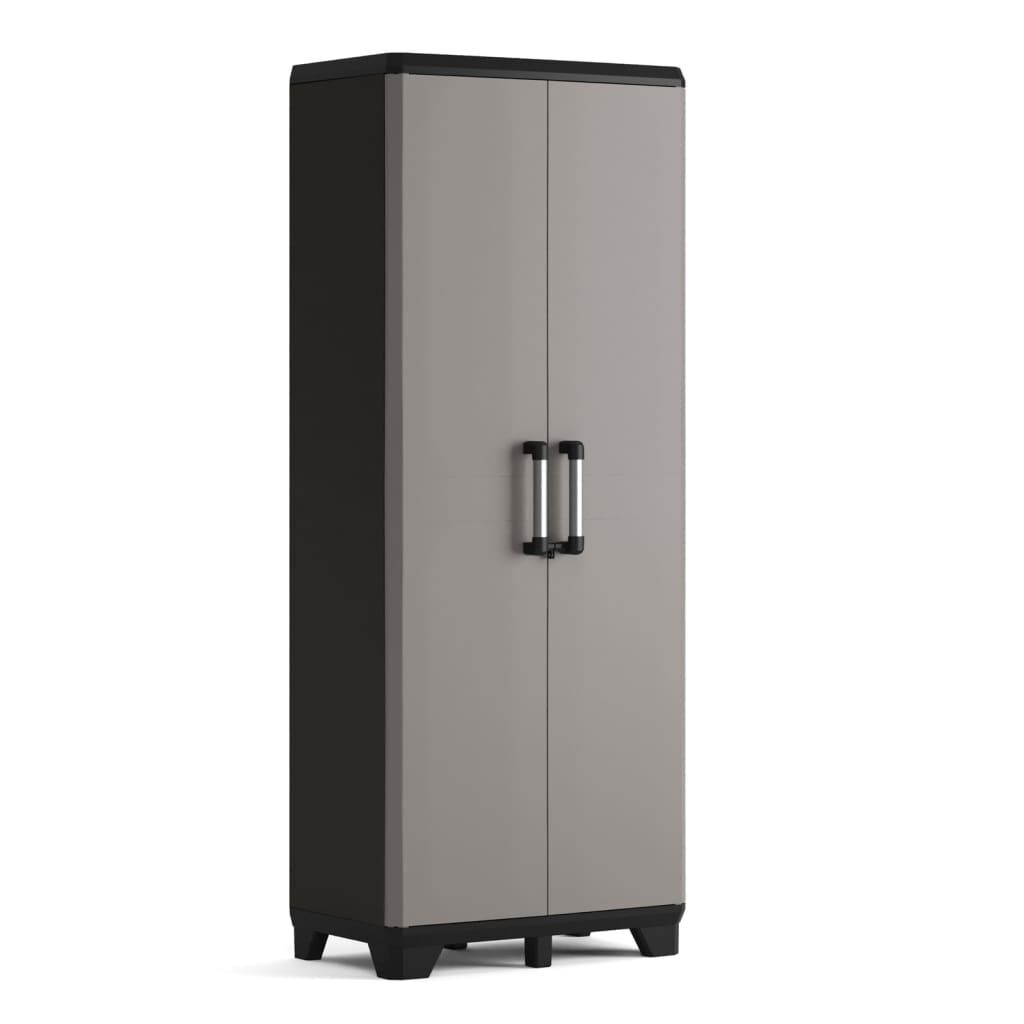 Αυτό το ντουλάπι αποθήκευσης Pro από την Keter έχει μια κομψή και μοντέρνα μινιμαλιστική εμφάνιση σε μαύρο και γκρι χρώμα και διαθέτει 4 ρυθμιζόμενα ράφια και μια μεταλλική ράβδο μέσα στο ράφι. Το ντουλάπι είναι εύκολο ως προς τη συντήρηση και εξαιρετικά ασφαλές, χάρις στις πόρτες που κλειδώνουν.