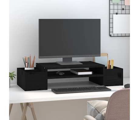 vidaXL Βάση Οθόνης Μαύρη 70x27,5x15 εκ. από Μασίφ Ξύλο Πεύκου