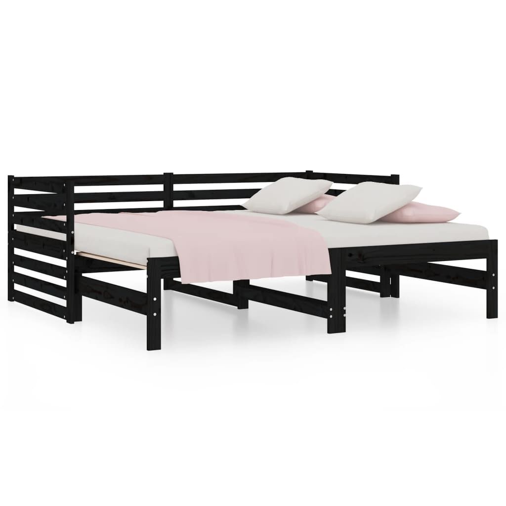 vidaXL Καναπές Κρεβάτι Συρόμενος Μαύρος 2x(90x190) εκ. από Μασίφ Πεύκο