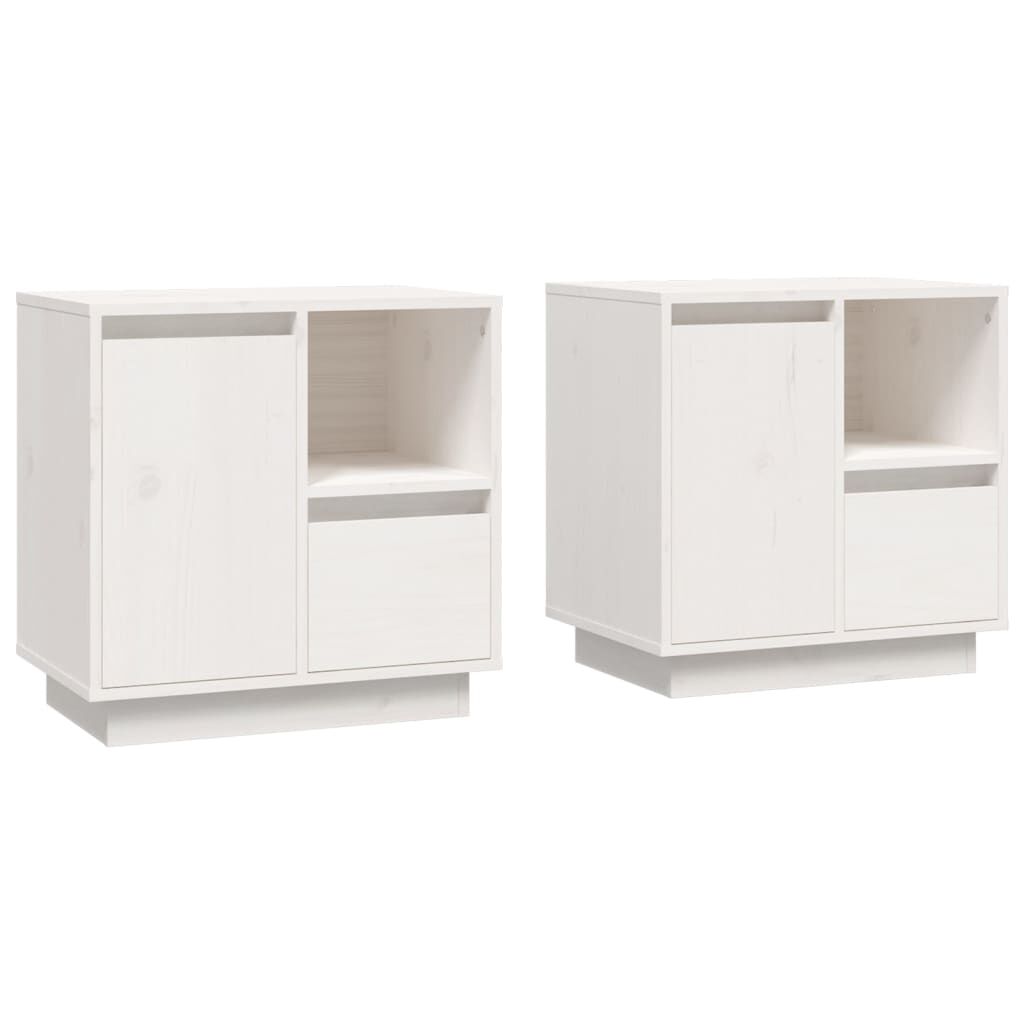 vidaXL Κομοδίνα 2 τεμ. Λευκά 50 x 34 x 50 εκ. από Μασίφ Ξύλο Πεύκου