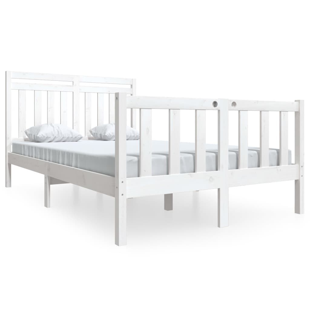 vidaXL Πλαίσιο Κρεβατιού Λευκό 135x190 εκ. από Μασίφ Ξύλο Double