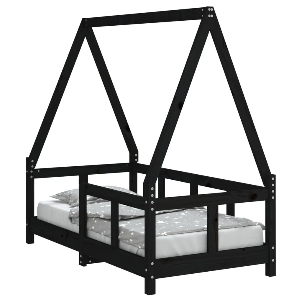 vidaXL Πλαίσιο Κρεβατιού Μαύρο70 x 140 εκ. από Μασίφ Ξύλο Πεύκου