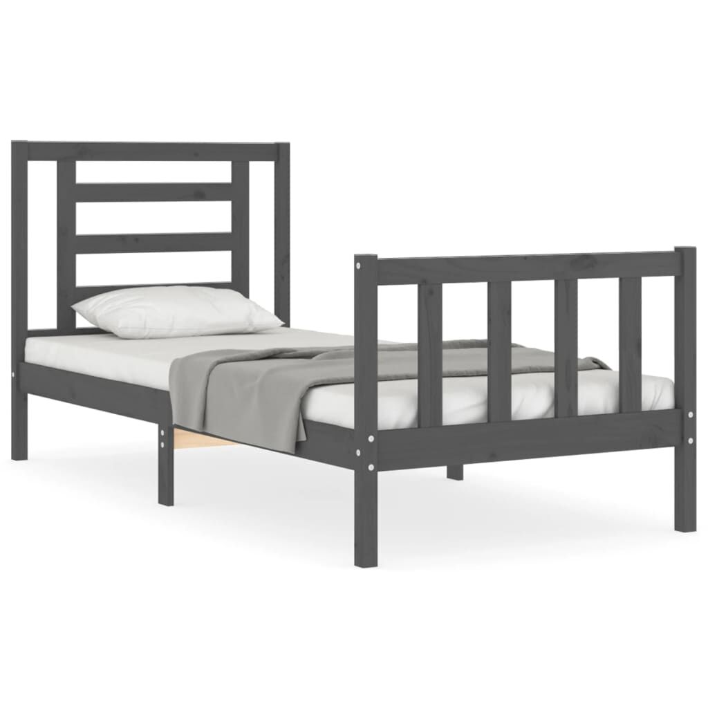 vidaXL Πλαίσιο Κρεβατιού με Κεφαλάρι Γκρι 100x200 εκ Μασίφ Ξύλο