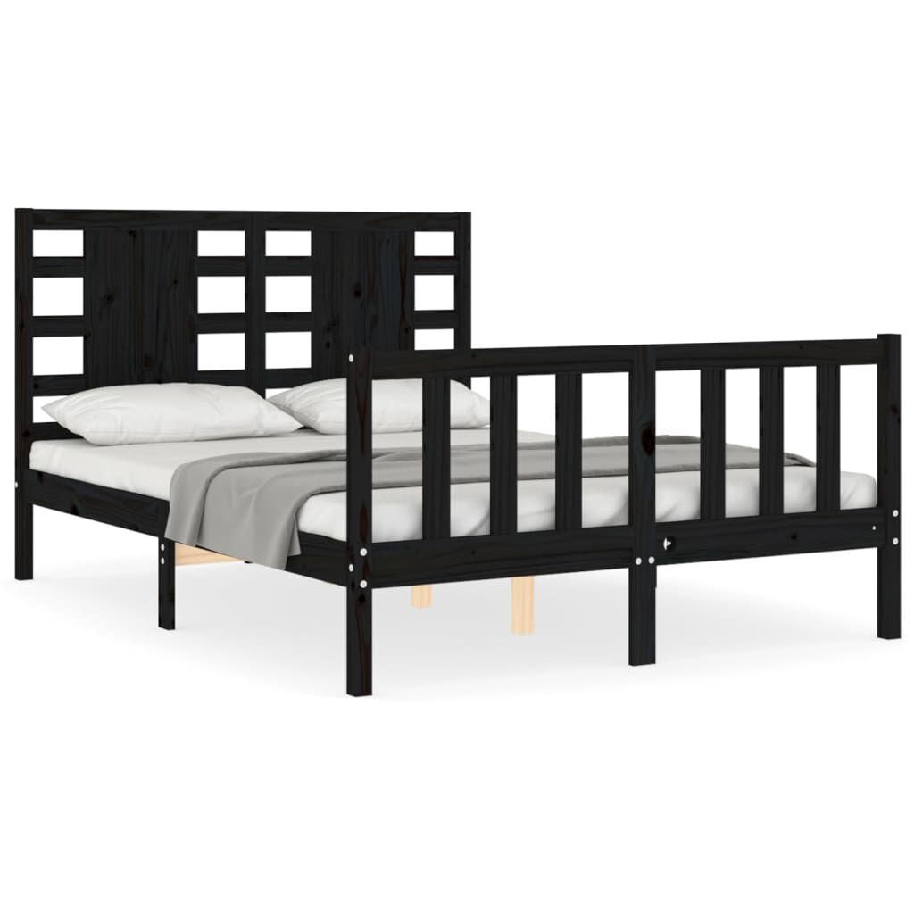 vidaXL Πλαίσιο Κρεβατιού με Κεφαλάρι Μαύρο 120x200 εκ. Μασίφ Ξύλο