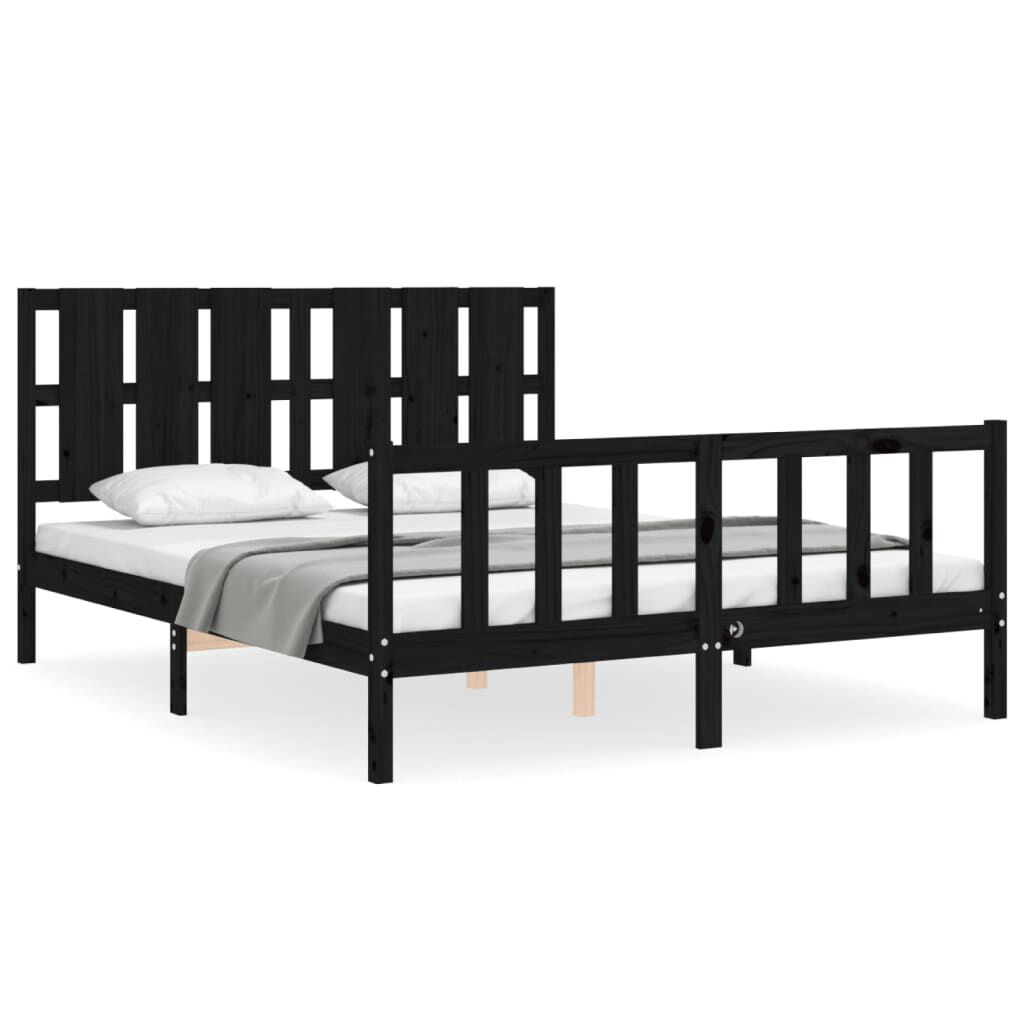 vidaXL Πλαίσιο Κρεβατιού με Κεφαλάρι Μαύρο 160 x 200 εκ. Μασίφ Ξύλο
