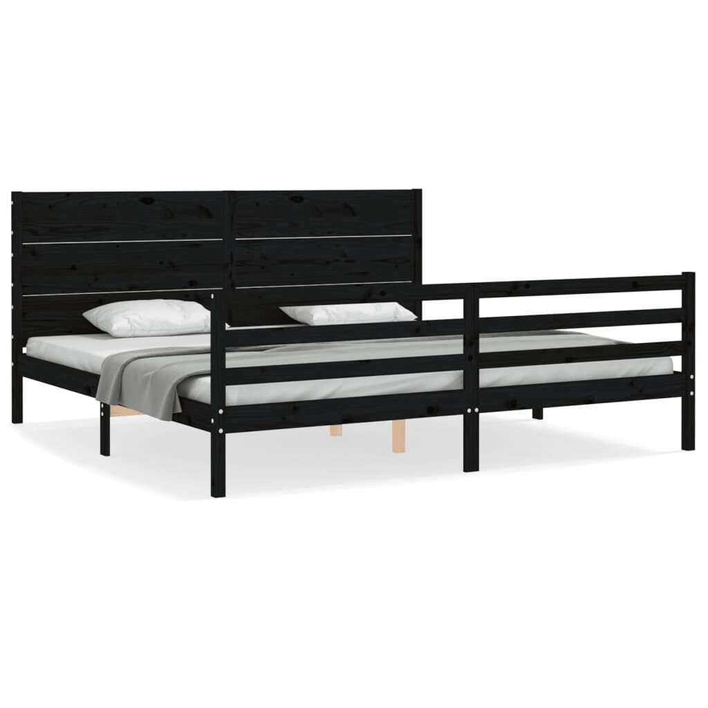 vidaXL Πλαίσιο Κρεβατιού με Κεφαλάρι Μαύρο 200x200 εκ. Μασίφ Ξύλο