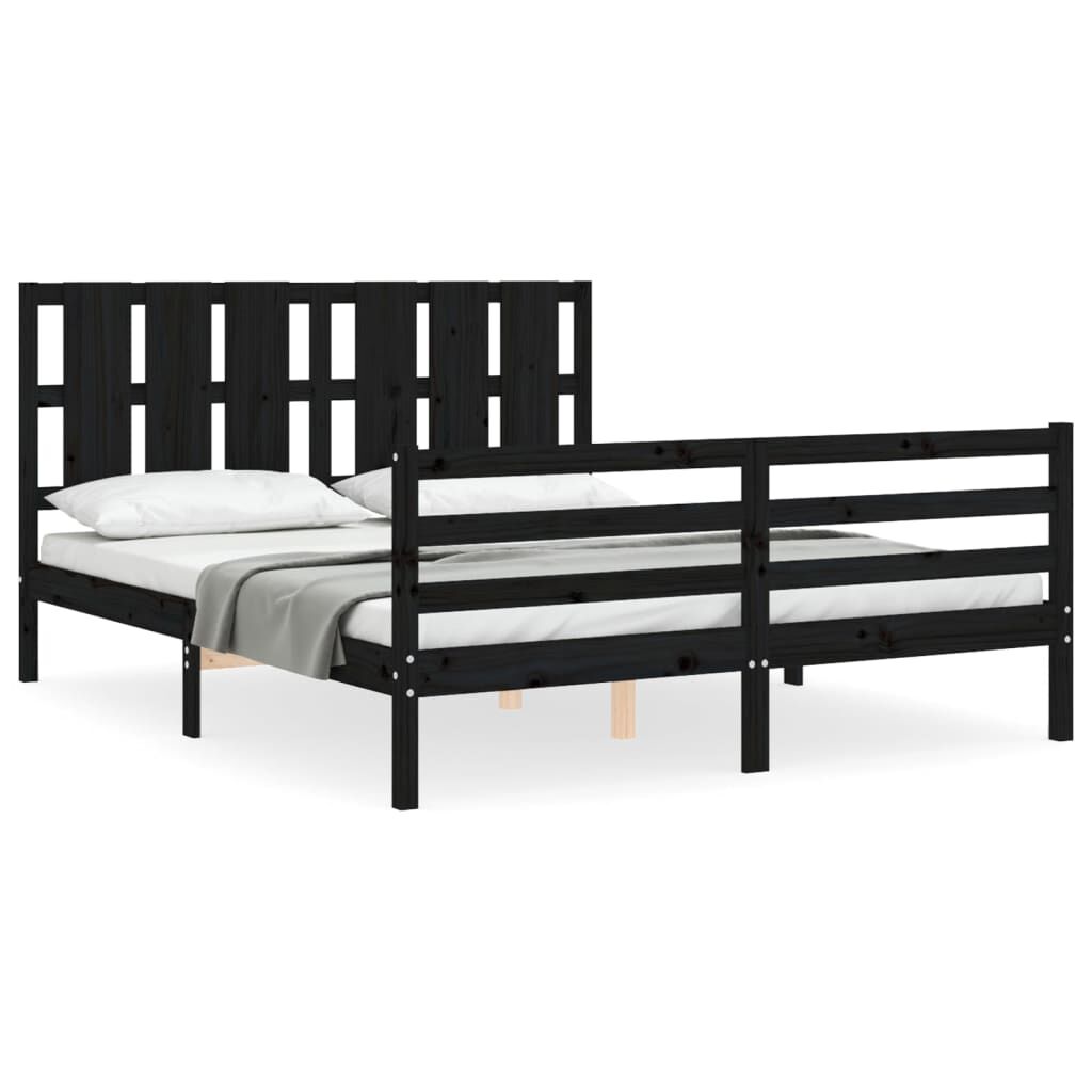 vidaXL Πλαίσιο Κρεβατιού με Κεφαλάρι Μαύρο Μασίφ Ξύλο King Size