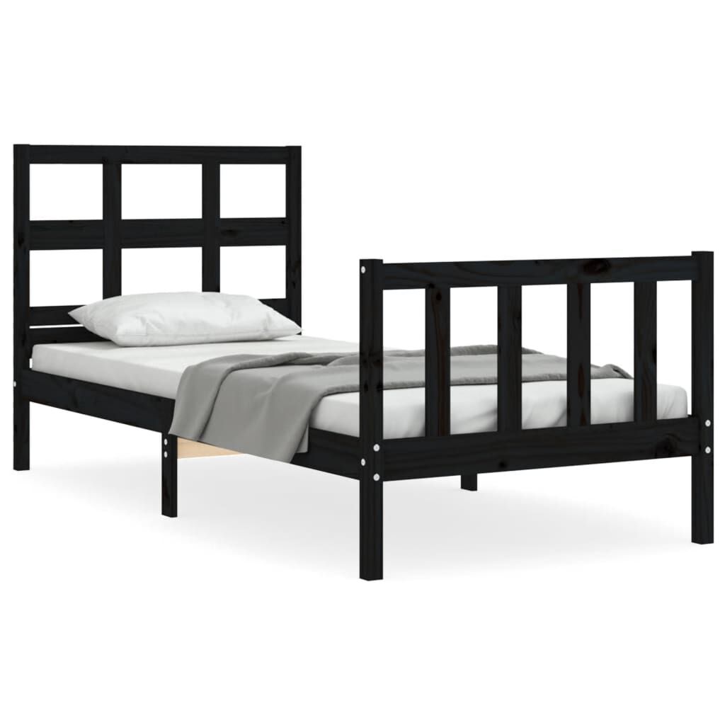 vidaXL Πλαίσιο Κρεβατιού με Κεφαλάρι Μαύρο Μασίφ Ξύλο Single