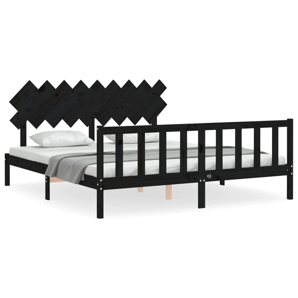 vidaXL Πλαίσιο Κρεβατιού με Κεφαλάρι Μαύρο Μασίφ Ξύλο Super King Size