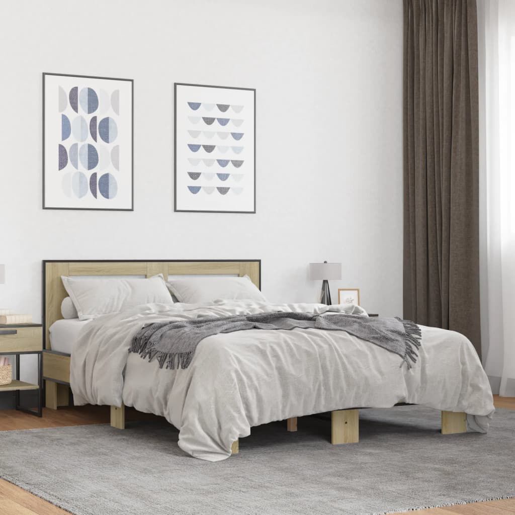 vidaXL Πλαίσιο Κρεβατιού Sonoma Δρυς 140x200 εκ. Επεξ. Ξύλο & Μέταλλο