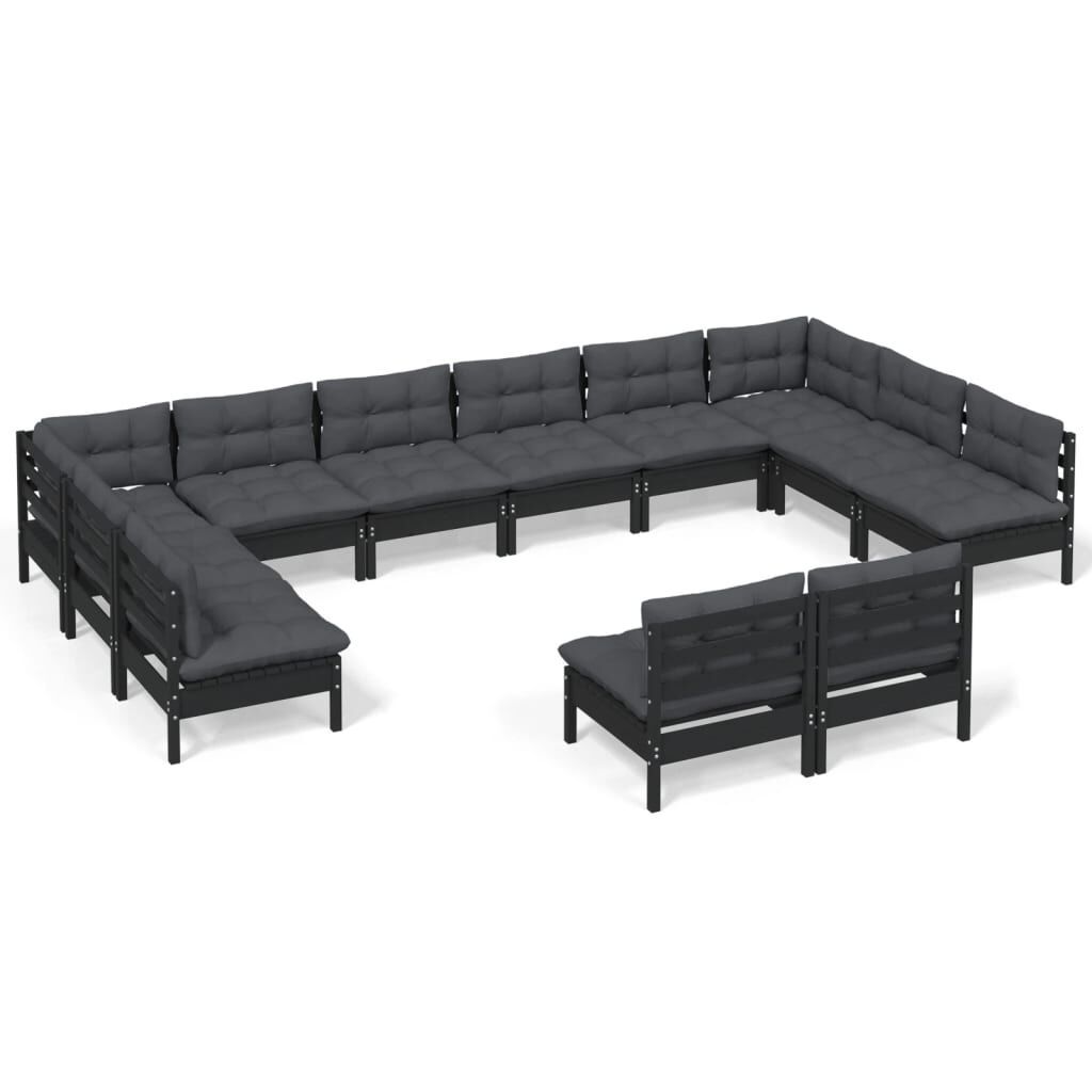 vidaXL Σαλόνι Κήπου Σετ 12 Τεμ. Μαύρο Μασίφ Ξύλο Πεύκου & Μαξιλάρια
