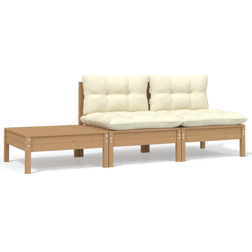 vidaXL Σαλόνι Κήπου Σετ 3 Τεμαχίων από Μασίφ Ξύλο Πεύκου με Μαξιλάρια