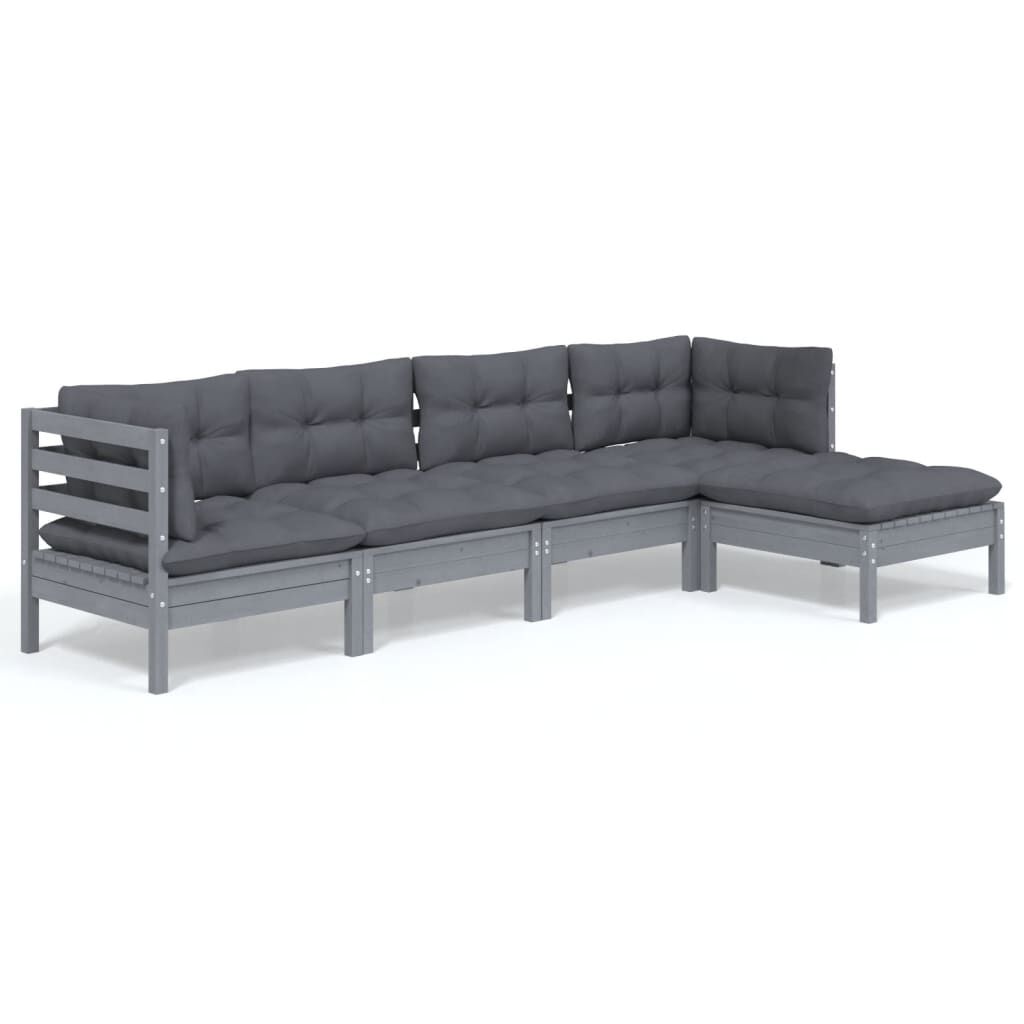 vidaXL Σαλόνι Κήπου Σετ 5 Τεμαχίων Γκρι από Ξύλο Πεύκου με Μαξιλάρια