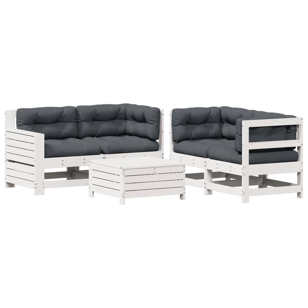 vidaXL Σαλόνι Κήπου Σετ 5 Τεμαχίων Λευκό Μασίφ Ξύλο Πεύκου & Μαξιλάρια