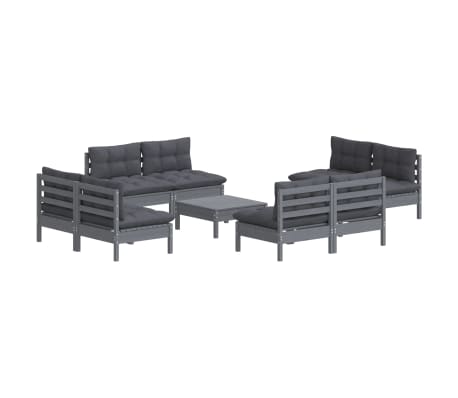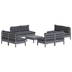 vidaXL Σαλόνι Κήπου Σετ 9 Τεμ. Ανθρακί από Ξύλο Πεύκου με Μαξιλάρια