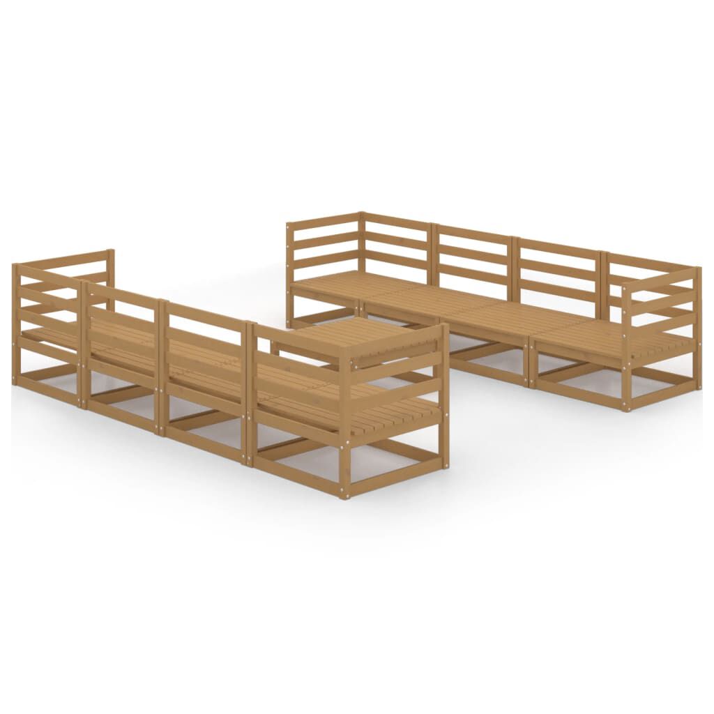 vidaXL Σαλόνι Κήπου Σετ 9 Τεμαχίων Καφέ Μελί από Μασίφ Ξύλο Πεύκου