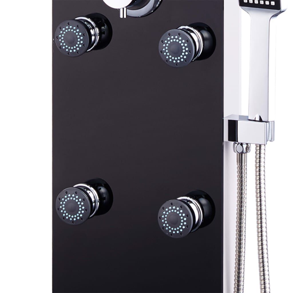 Η κολόνα ντους είναι κατασκευασμένη από ανοξείδωτο ατσάλι και ψημένο γυαλί. Το ψημένο γυαλί παράγεται με ελεγχόμενη θερμική ή χημική επεξεργασία, ώστε να είναι πιο ανθεκτικό σε σχέση με το κοινό γυαλί. Διαθέτει τρεις λειτουργίες ντους, οι οποίες επιλέγονται εύκολα: βροχή, υδρομασάζ και τηλέφωνο. Τα ακροφύσια σιλικόνης αντιστέκονται στη συσσώρευση αλάτων. Βιώστε μια πραγματικά χαλαρωτική εμπειρία ντους και απολαύστε το μοντέρνο στιλ αυτής της κομψά σχεδιασμένης στήλης ντους υδρομασάζ! Η συναρμολόγηση είναι εύκολη.