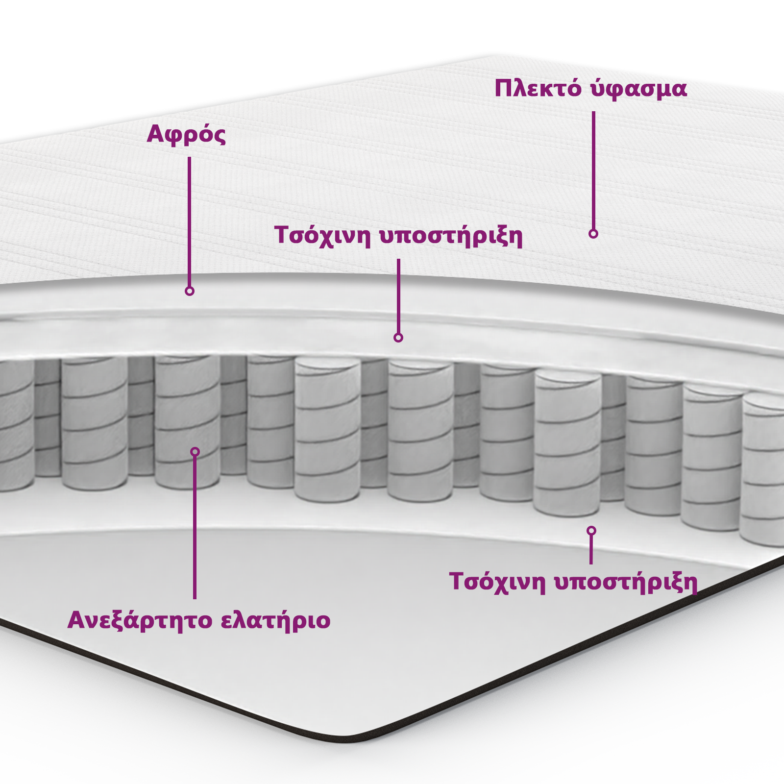 • Υλικό γεμίσματος: Ανεξάρτητα ελατήρια (pocket springs), αφρώδες υλικό