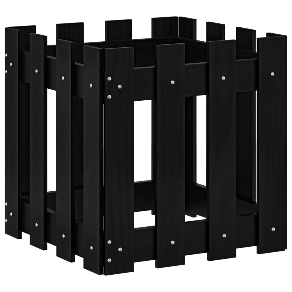 vidaXL Ζαρντινιέρα με Σχέδιο Φράχτη Μαύρη 40 x 40 x 40 εκ. Μασίφ Πεύκο