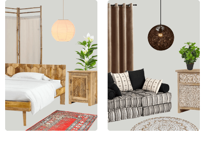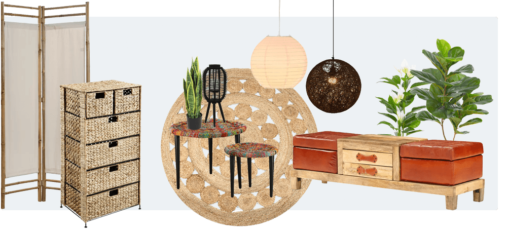 Δύο εσωτερικοί χώροι με μποέμ στιλ δεν φαίνονται ακριβώς οι ίδιοι. Αυτό είναι το ιδανικό στιλ αν επιθυμείτε να δημιουργήσετε κάτι μοναδικό. Τα έπιπλα σε boho στιλ είναι κατασκευασμένα από φυσικά υλικά όπως ρατάν, μπαμπού, wicker, γιούτα, σιζάλ και ανακυκλωμένο ξύλο. Αυτό το στιλ σάς επιτρέπει να ξαναθυμηθείτε τα μέρη που έχετε ταξιδέψει προβάλλοντας τα αντικείμενά σας σε ένα κομψό ντουλάπι ή σε ένα βοηθητικό τραπέζι.