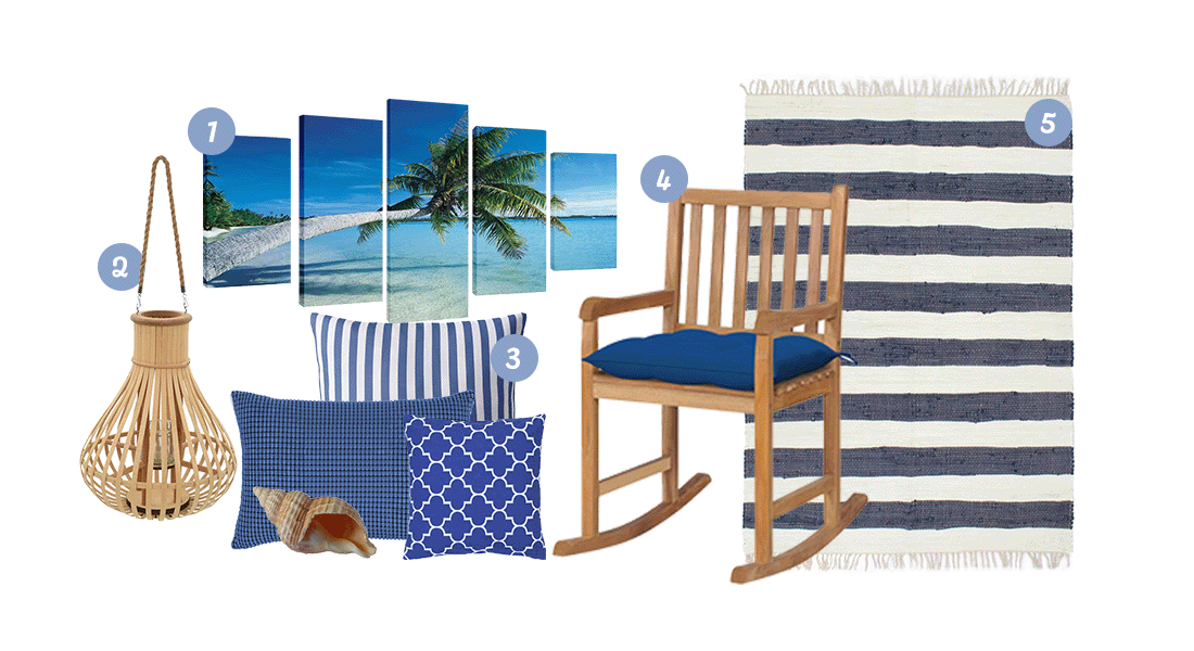 Θα χρειαστείτε μερικές τροπικές λεπτομέρειες, όπως μοτίβα από φοίνικες, φλαμίνγκο ή ανανάδες, εάν θέλετε να πετύχετε ένα εφέ εμπνευσμένο από νησί. Αν θέλετε να προσδώσετε μια αίσθηση ζεστασιάς, σκεφτείτε να προσθέσετε πινελιές σε στιλ εξοχικής κατοικίας και έπιπλα με παλαιωμένη εμφάνιση στον σχεδιασμό του παραθαλάσσιου σπιτιού σας.